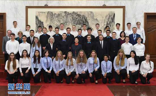 中国国家主席习近平夫人彭丽媛在北京钓鱼台国宾馆会见德国伯乐高级文理中学师生? 新华社记者?谢环驰 摄
