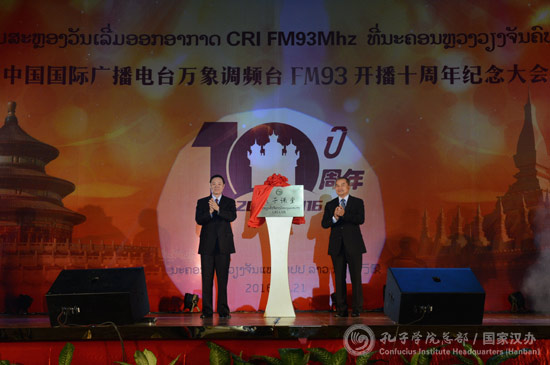 12月21日下午,中共中央政治局委员、中央书记处书记、中宣部部长刘奇葆与老挝人民革命党中央书记处书记、宣传部部长吉乔?开坎佩吞一同为老挝国家广播电台广播孔子课堂揭牌。老挝中资企业和机构代表、万象调频台受众代表和老挝各界人士共300余人参加了揭牌仪式。