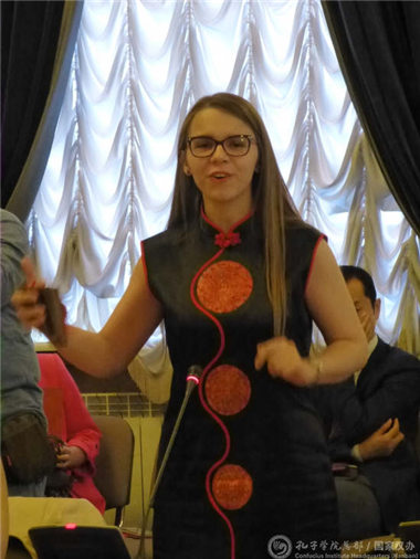 圣彼得堡国立大学法律系学生米勒左耶夫·法利德用流利的汉语向大家介绍了自己学习汉语的经历和为增进两国友谊而工作的理想。东方系学生珀丽娜·布茨克为大家吹奏了笛子曲《梦里水乡》,管理系学生艾斯嘉为大家献上欢快幽默的快板《老外学汉语》,赢得了现场嘉宾的热烈掌声和高度赞扬。