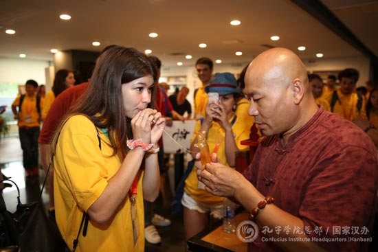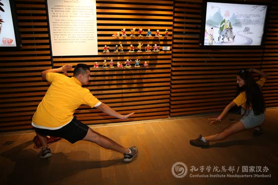 各国大学生们参观了孔子学院总部中华文化体验厅和“一带一路”孔子学院成果展。他们或进行多媒体互动,合影留念,或身着汉服,体验戏曲人物角色。不同国家的青年们打破语言的束缚,用中文相互交流,在浓郁的中国传统文化氛围中一片欢声笑语。