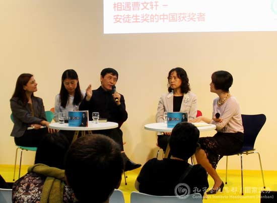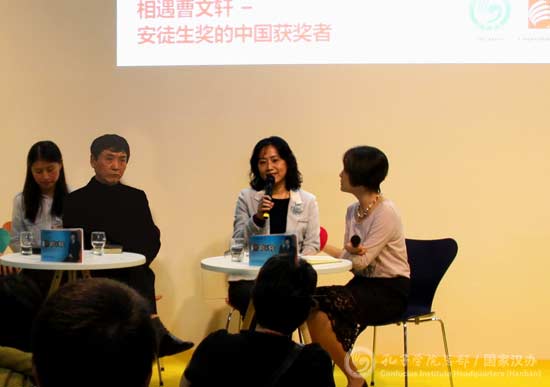 10月12日,在法兰克福书展Kids Stage平台上,孔子学院总部副总干事静炜与著名作家曹文轩展开专题对谈“相遇曹文轩——安徒生奖的中国获奖者”,这是2016年“中国孩子的书香世界”绘本展的延展项目。同期孔子学院总部与江苏凤凰出版传媒集团有限公司合作,在慕尼黑孔子学院和海德堡孔子学院的组织支持下,“曹文轩2017年文学交流德国之旅”赴慕尼黑国际青少年图书馆和海德堡市图书馆开展系列活动。