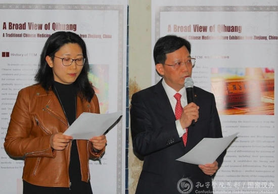 当天下午3点,开幕式在活动协办单位里斯本中文学校副校长李晓红老师《我爱你,我的祖国》的歌声中拉开帷幕,展览主办方之一浙江中医药大学副校长郭清首先致辞祝贺本次展览成功举行,并感谢科英布拉大学为本次展览付出的辛勤努力。