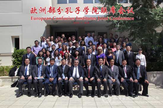 雅典经济与商业大学校长吉亚库马基斯教授,孔子学院总部副总干事、国家汉办副主任赵国成,对外经济贸易大学校务委员会主任蒋庆哲,中国驻希腊大使馆政务参赞王强,中国驻希腊大使馆文化专员王超,雅典商务孔子学院中方院长祖利军教授与来自欧洲14个国家的33所孔子学院代表共同出席了本次会议。