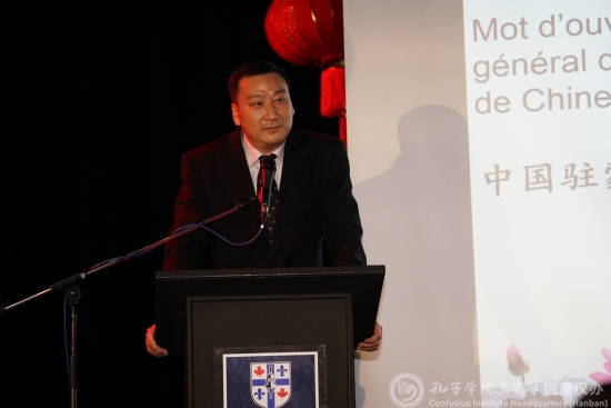 首先,由菲利普·韦林致欢迎辞,祝贺“汉语桥”比赛的顺利开幕,鼓励魁北克的青少年学好汉语,了解中国文化。