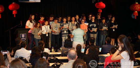 二级比赛除了演讲还安排了才艺表演环节,选手们各展其能,绘声绘色讲故事、拉二胡、弹古琴、写书法,让观众连连惊叹。身为中学生的他们甚至能自如地吟诵王维、李白、杜甫,中国古老而绚烂的文化让他们深深着迷。