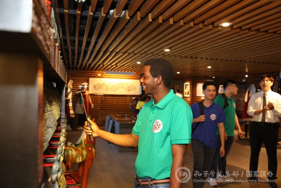 活动当天,全体选手和带队教师在总部大楼万国旗前合影,并兴致勃勃地参观了中国文化体验中心,近距离体验中华文化的博大精深。参赛选手们现场穿戴起“京剧”服饰、体验数码京剧头像、“演奏”古琴等。