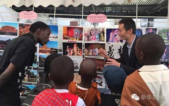 肯尼亚埃格顿大学孔子学院师生12日来到纳库鲁市狮子小学,开展了一场别开生面的中国文化展览和文艺演出。