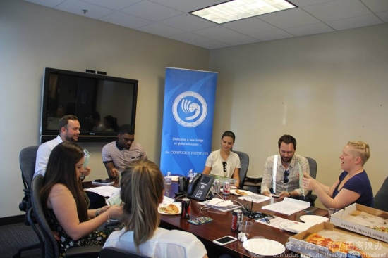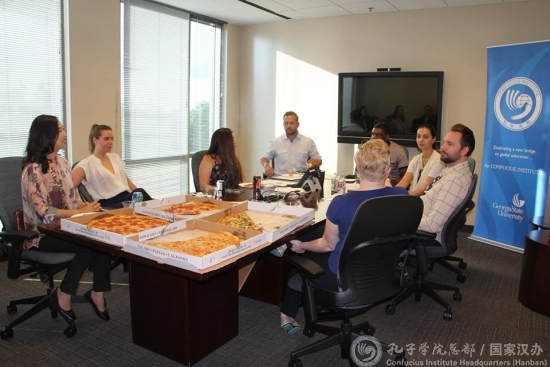 当地时间5月31日,美国佐治亚州立大学孔子学院在亚特兰大国际事务委员会(World Affairs Council of Atlanta)总部举办“2018年孔子新汉学计划——青年领袖项目”行前培训会,为参与项目的各位成员答疑解惑。