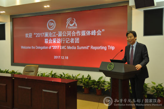 12月18日,“2017澜沧江-湄公河合作媒体峰会”联合采访行记者团一行40名主流媒体资深记者访问365bet365官网。孔子学院总部副总干事、国家汉办副主任郁云峰接待了该记者团并座谈。