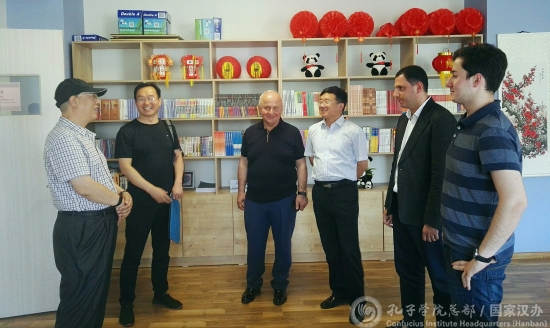代表团在第比利斯开放教育大学副校长乔治·阿米拉赫瓦力(Girogi Amilakhvari)和孔子课堂中方负责人车如山的陪同下,参观了孔子课堂教室、图书室和文化体验室,了解了孔子课堂开展的汉语教学和文化活动情况。