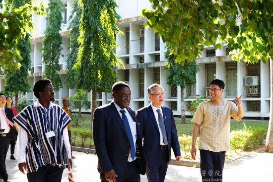随后,访问团一行参观了达累斯萨拉姆大学校园,并来到正在施工的达大新图书馆和孔子学院大楼现场,走进大楼内部,了解项目施工细节。刘岩介绍了孔院的文化教学活动以及取得的成绩,访问团对此给予高度评价,并对达大美丽的校园和自由开放的学风表示赞赏。