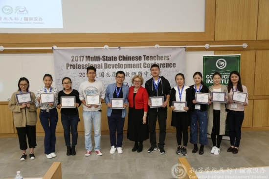 当地时间10月20日至22日,来自全美24个州的144名志愿者参加了由孔子学院总部志愿者中心主办、肯塔基大学孔子学院承办的2017美国志愿者教师岗中培训。肯塔基大学负责国际事务的副教务长苏珊·罗伯茨(Susan Roberts)、肯塔基孔院院长修华静以及国家汉办派驻美国志愿者管理教师出席大会。