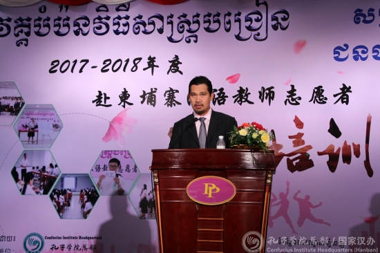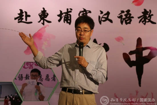 孔子学院总部志愿者工作处滕连帅在致辞中对志愿者教师在柬的汉语教学和文化交流中所做的努力和贡献表示赞扬。他说,志愿者们在艰苦的工作和生活环境中积极开展汉语教学和中国文化推介活动,受到当地学校和民众们的热烈欢迎,为增进两国教育文化交流以及两国人民的友谊注入了积极动力。