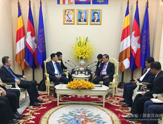 马箭飞副主任在致辞中指出,柬皇家科学院孔子学院在习近平主席、洪森首相亲自关心和两国政府的高度重视、社会各界的大力支持下,不辱使命、创新发展,已经成为中柬之间的文化之桥、心灵之桥,为巩固和发展两国传统友好关系发挥了独特作用。当前,中柬双方全方位、宽领域、深层次合作不断深入发展,特别是随着柬埔寨深度参与“一带一路”建设,两国经贸合作日益增长,为孔子学院发展提供了难得的机遇,提出了更高的要求。希望中柬双方继续精诚合作、共同努力,不断提高孔子学院的办学质量和水平、加大培养各领域本土人才,为夯实两国世代友好的民意基础、增进中柬人民理解和友谊,推进中柬两国构筑牢不可破的命运共同体,作出新的更大的贡献。
