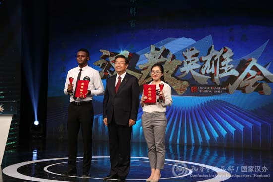 经过专家点评打分,留学生评审团投票,来自北京外国语大学的曾安迪和南开大学的尼日利亚学生韩懋宇分别获第二届“汉教英雄会”中外研冠军,北京语言大学的陆逸飞、福建师范大学的孙梦男、北京大学的日本学生茂野瑠美和北京语言大学的哈萨克斯坦学生古普耐分别获中外研亚军,吕哲、车俊池、王柯然、艾墨本(美国)、白婷丽(土耳其)和何浩德(喀麦隆)分别获中外研季军。