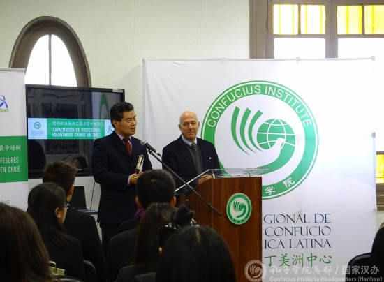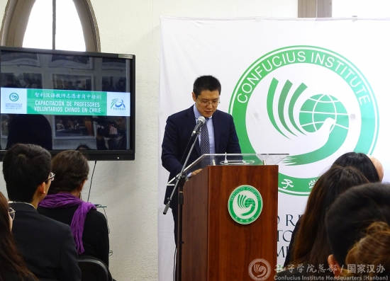 李卓在讲话中代表孔子学院总部对志愿者教师们表示亲切问候,并表达了总部志愿者工作处对智利汉语教学的重视和支持。