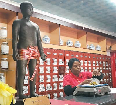 在比勒陀利亚非裔民众聚集的森尼塞德街区,一家挂着中文招牌的店铺格外醒目:“北京同仁堂”,黑底金字,颇具“中国范”。还未进门,一股清淡的中草药香扑面而来。