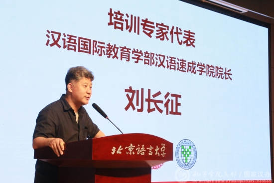 培训专家代表、汉语国际教育学部汉语速成学院院长刘长征表示,赴美汉语教师志愿者有三重身份:志愿者身份,代表的是一种奉献、友爱、互助、进步的精神;汉语教师身份,这是一种职业身份,它代表着专业知识、专业技能和职业道德;中国人身份,大家即将在异国异文化中面临着如何自处和如何与他人相处的问题。刘长征表示,要做好这三重身份需要认真参加培训,努力完成培训的每项任务与要求,并对志愿者们表达了美好祝愿。